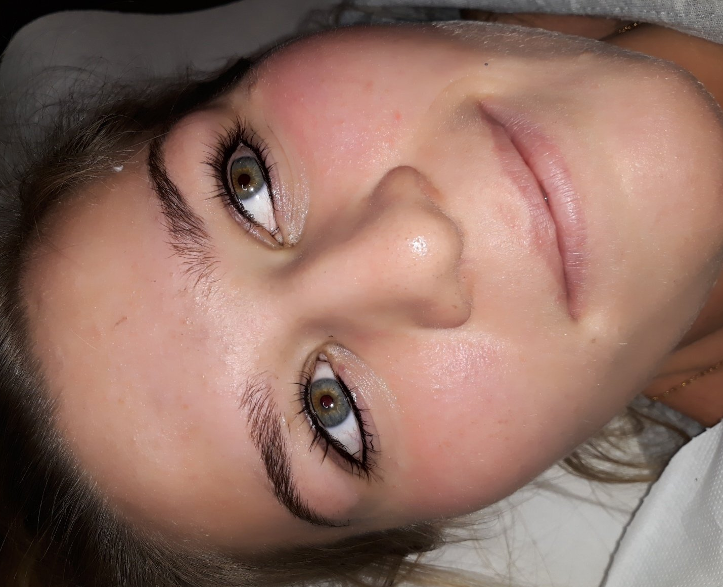 Permanent make-up can be worn like this or sublimated by a glittery or colored makeup.