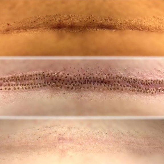 Le patient repart avec des petits points foncés sur la zone traitée, qui vont former de minuscules croûtes.